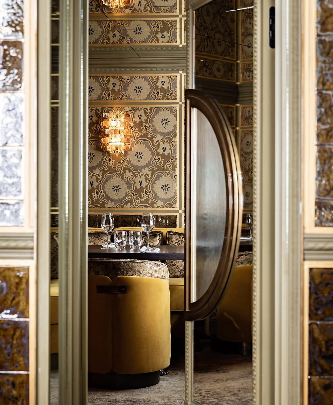 Candlelight on mirrors. A lighter, playful take on French precision — the cape stayed until the last glass.